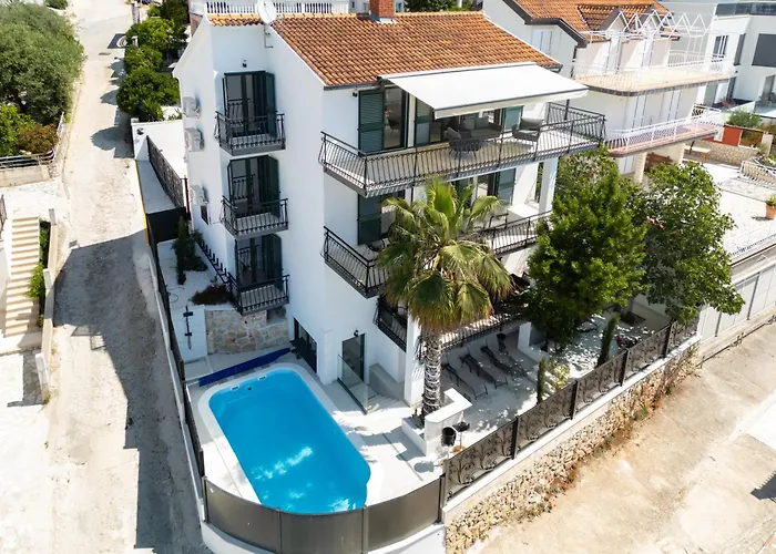 De 7-slaapkamer Villa Aea Del Mare Trogir ligt op 450 meter afstand van Beach Vela Draga en biedt gasten de mogelijkheid om te ontspannen bij een zwembad. Deze villa ligt op 3 km afstand van Historische Plaats van Trogir en beschikt over een terras met uitzicht op de zee.